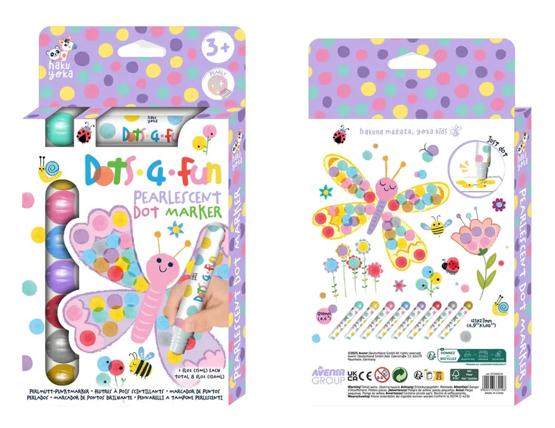 טושי הדוט הפנינתיים מאפשרים לילדים ליצור נקודות צבע מנצנצות שמוסיפות אור, צבע וקסם לכל יצירה.