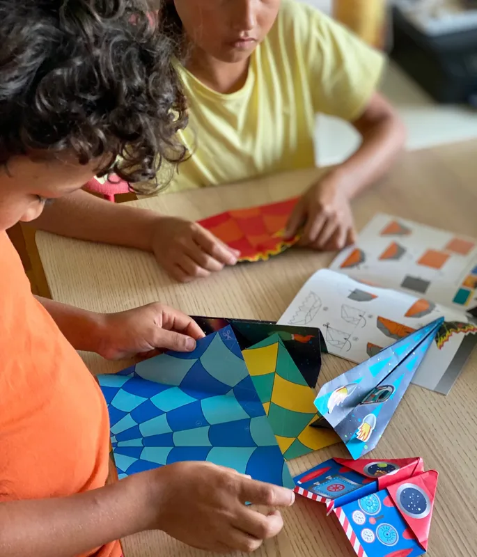 • כ־40 דפי נייר צבעוניים עם סימוני קיפול