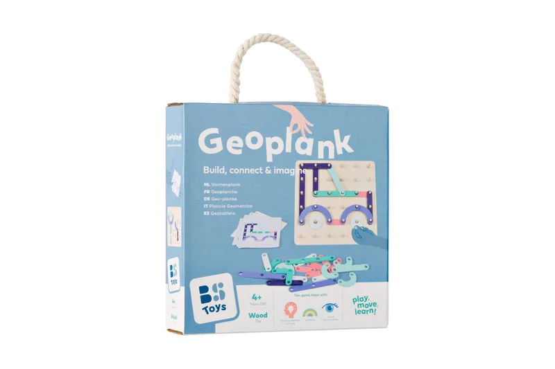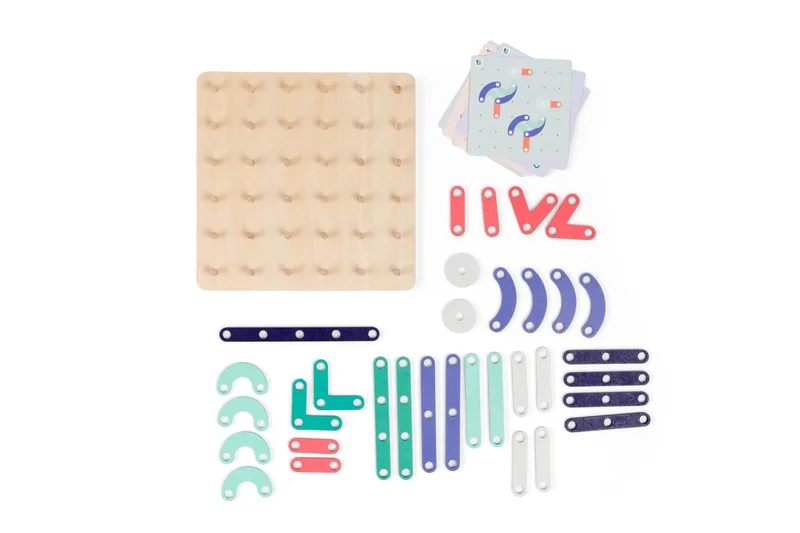 משחק עץ חכם ומזמין שמאפשר לילדים להרכיב צורות, לבנות דגמים ולהיכנס לעולם גיאומטרי צבעוני ומלא יצירתיות.