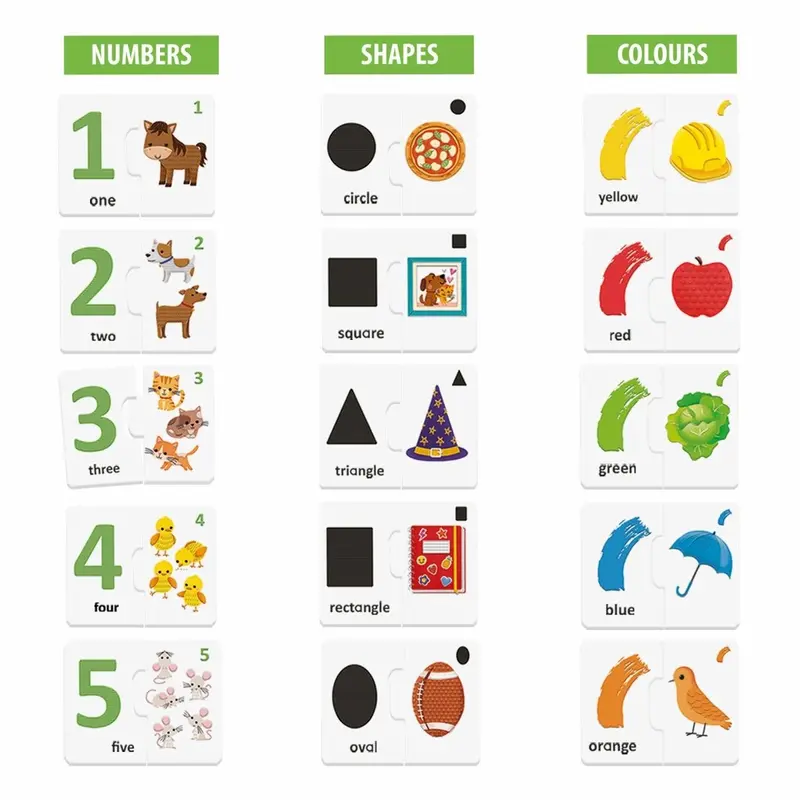 לדוגמה: התאימו את הכתם האדום לתפוח האדום, את הצללית של משולש לכובע המכשף המשולש, או את הספרה "2" לתמונה של שני כלבים.