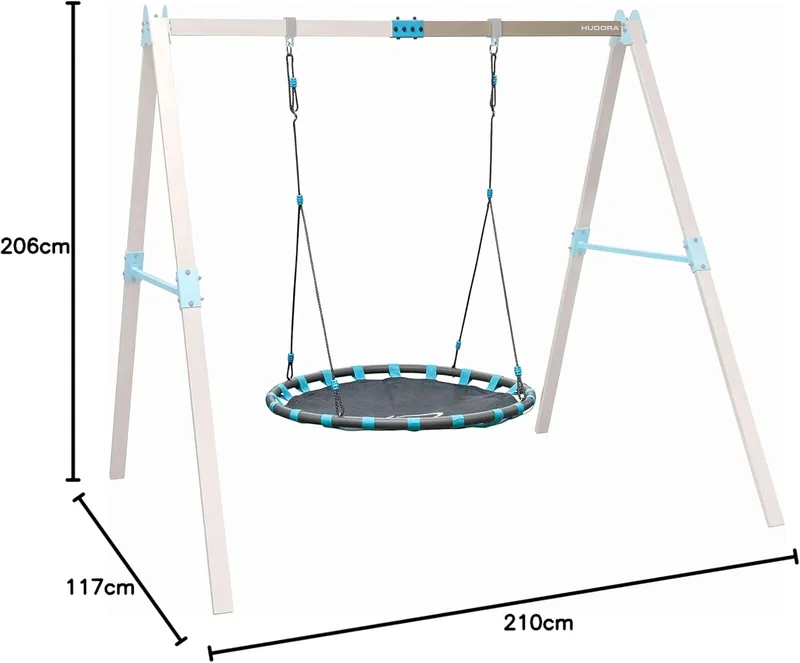 • מושב נדנדה יחיד מתכוונן (100–158 ס"מ) בצבע כחול