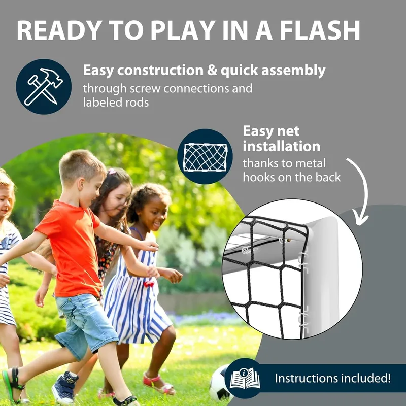 שער כדורגל מקצועי בגודל מלא, מתאים לחצרות גדולות ולמשחקים אינטנסיביים.