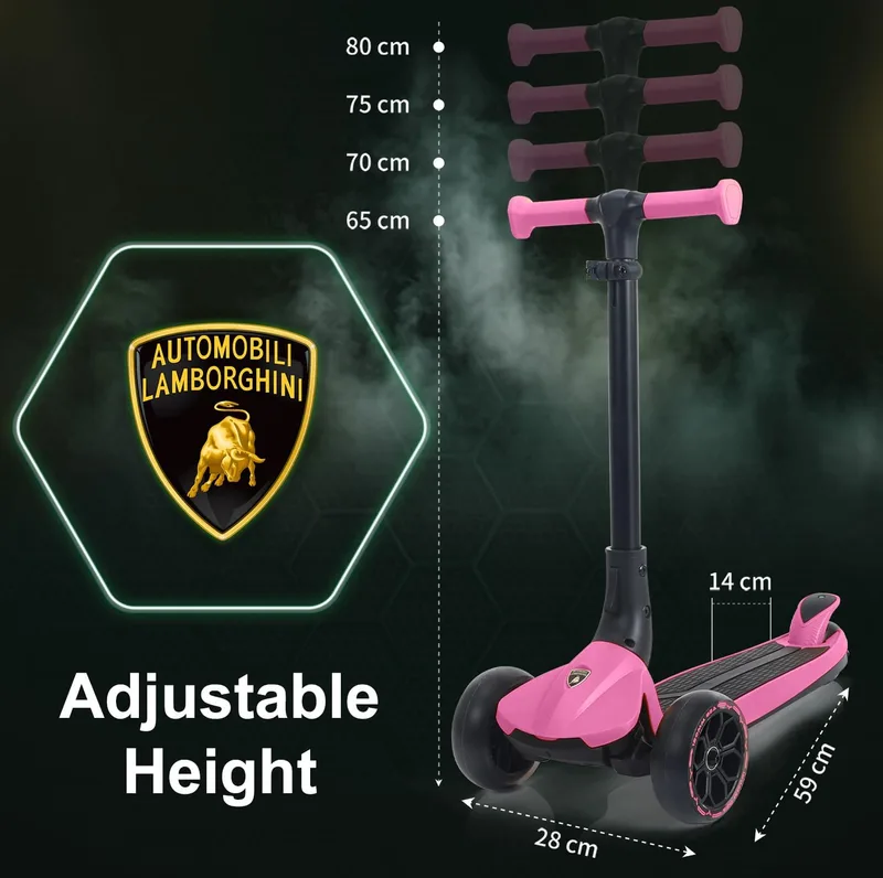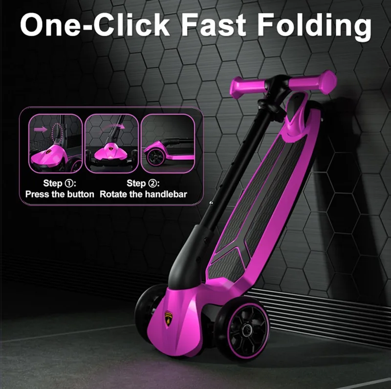 קורקינט למבורגיני מתקפל ורוד עם לד - kick n roll