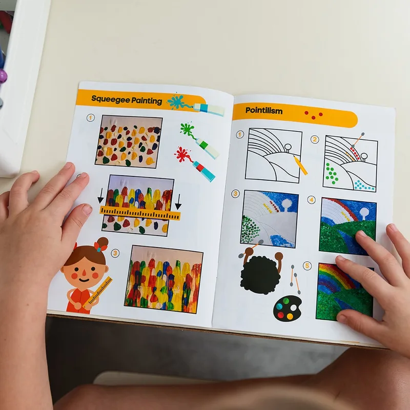 מגיעה עם חוברת השראה ובה 14 טכניקות ציור מגוונות שמעודדות יצירתיות והתנסות.