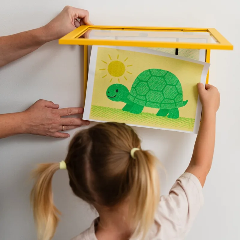 פתרון מושלם לאחסון ציורי ילדים בצורה מכבדת, מסודרת ומעוררת השראה.
