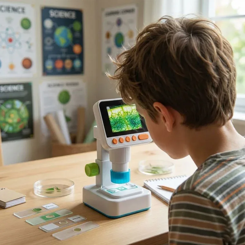 מיקרוסקופ דיגיטלי לילדים עם הגדלה של עד פי 150 ומסך IPS LCD צבעוני וחד.