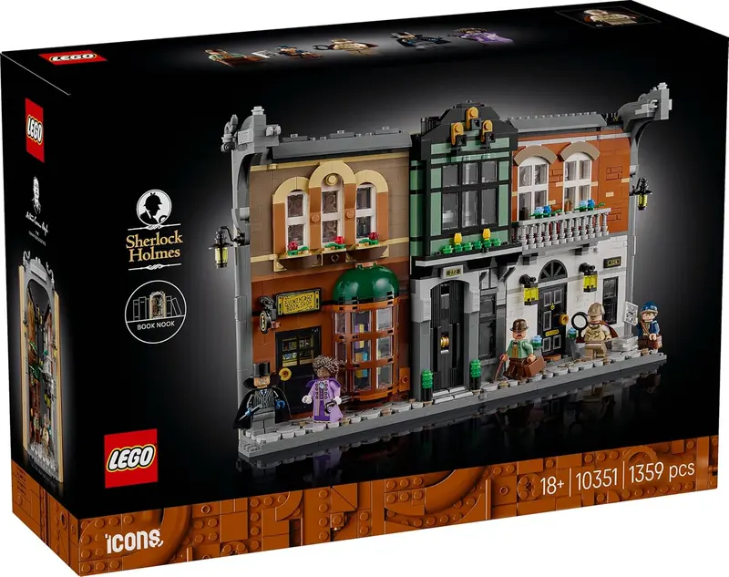 ערכת LEGO® Icons "דיורמה על מדף ספרים: שרלוק הולמס" (10351) מזמינה אתכם להיכנס לרחוב בייקר המסתורי בלונדון הוויקטוריאנית. זהו דגם בנייה ייחודי למבוגרים המשלב עיצוב אלגנטי, מסתורין קלאסי ואווירה של ספר הרפתקאות חי.