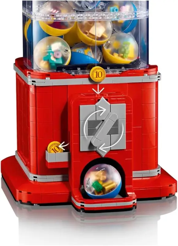 בנו את המכונה שלב אחר שלב, הכניסו את המטבע הייעודי, סובבו את הידית וגלו איזו מיני-דמות מחכה לכם הפעם.