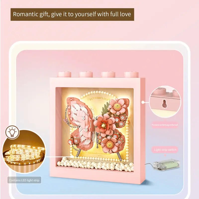 פתחו את האריזה, ארגנו את 822 החלקים, ופעלו לפי ההוראות המדויקות כדי להרכיב את הפרפר הורוד.