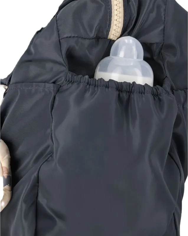 תא ייעודי למגבונים, בקבוקים תרמיים, ונרתיק מוצץ מצורף. -