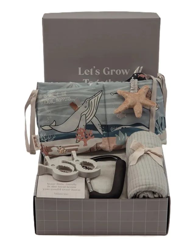 Bundle of Sweetness של Minene הוא מארז לידה עדין ושימושי, שמחבר בין סדר בעגלה, רגעי משחק ראשונים ומגע רך שמרגיע.