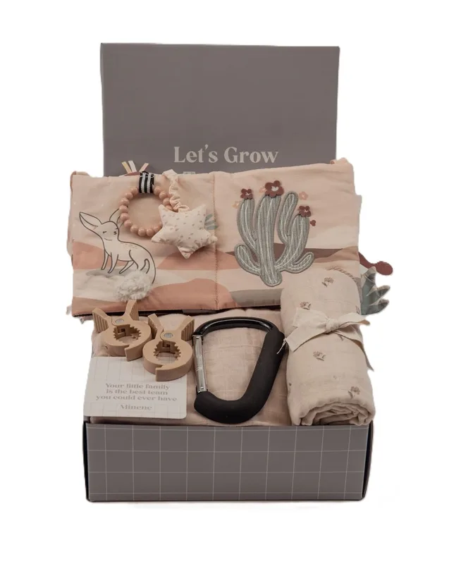 Bundle of Sweetness של Minene הוא מארז לידה עדין ושימושי, שמחבר בין סדר בעגלה, רגעי משחק ראשונים ומגע רך שמרגיע.