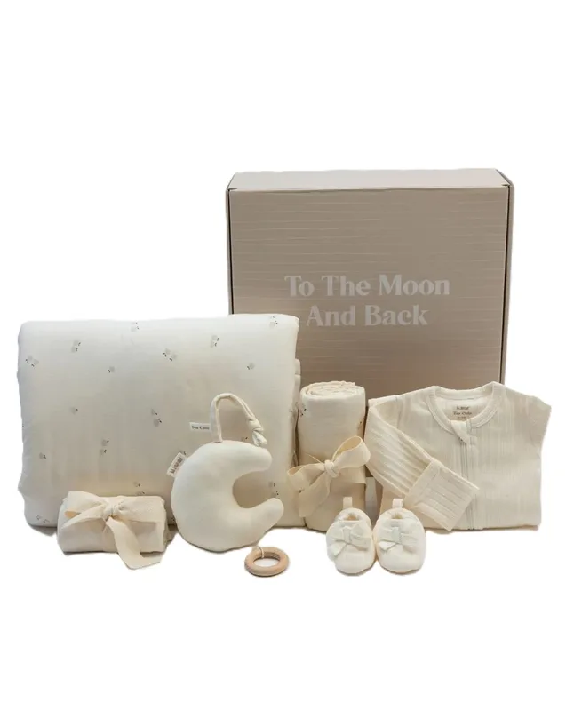 To the Moon and Back של Minene הוא מארז לידה עשיר, רך ומחבק, שנוגע בכל רגעי ההתחלה – שינה, לבוש, משחק וחום. כזה שמרגיש כמו הבטחה שקטה: אנחנו כאן, עד הירח ובחזרה.