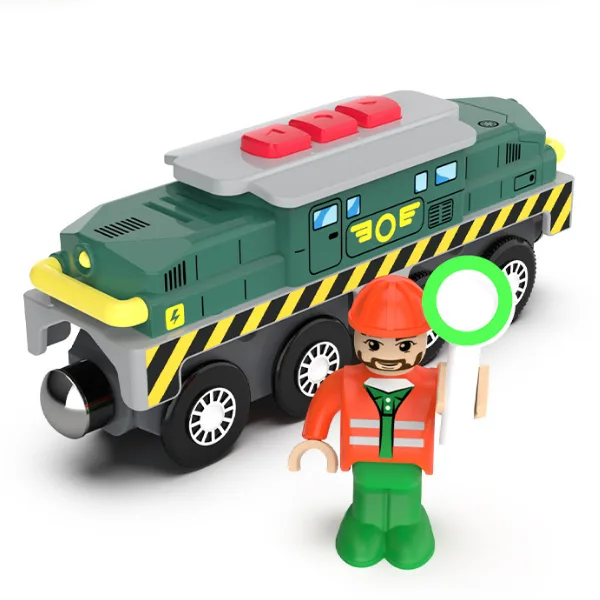קטר אלקטרוני גדול עם קרון מגנטי, דמות ואביזר נלווה.