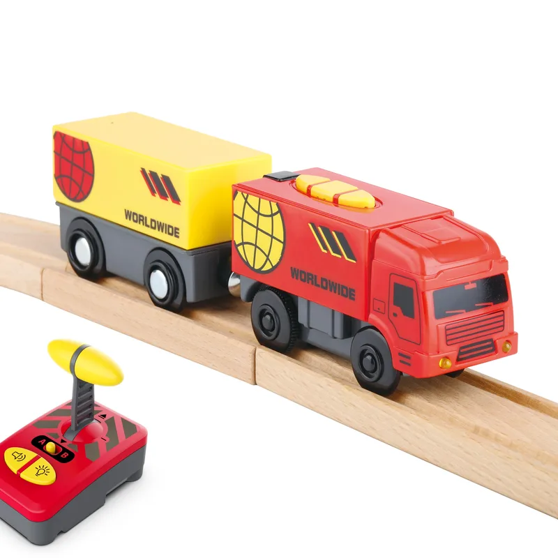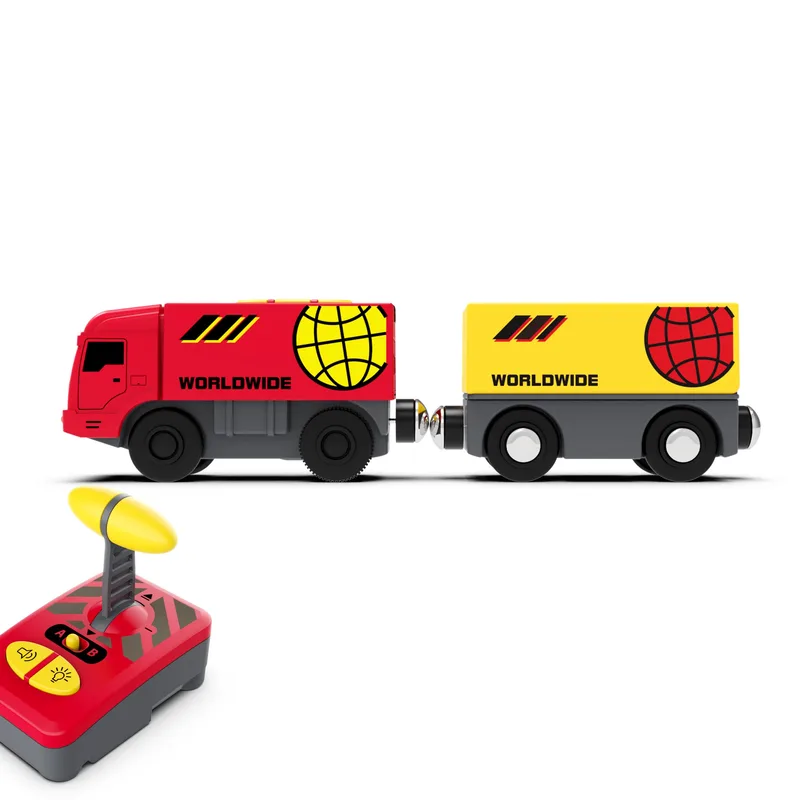 קטר חשמלי עם קרון מטען מגנטי ושלט רחוק.