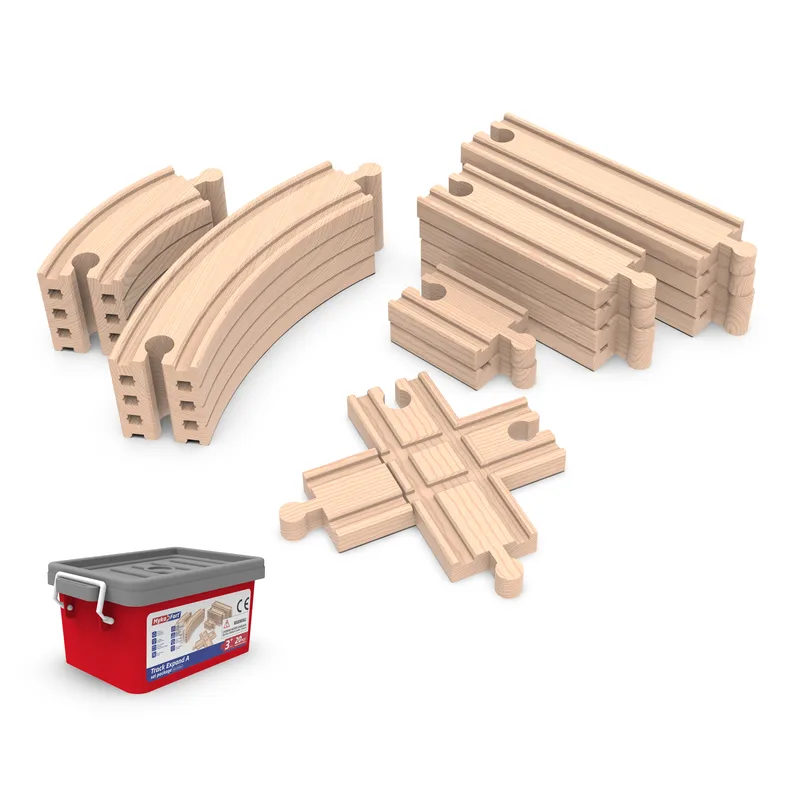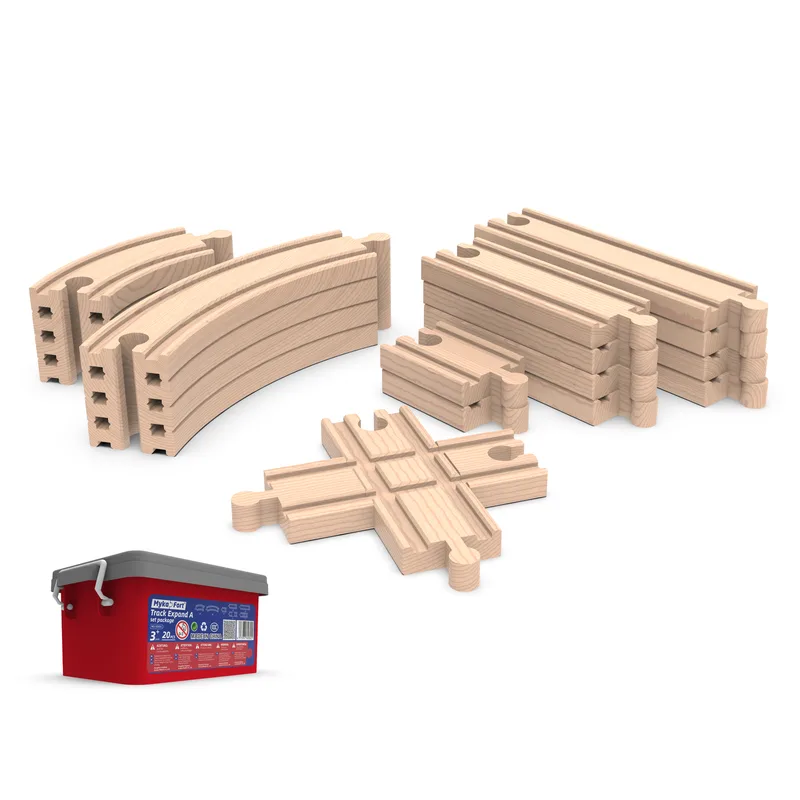 ערכת 20 מסלולי עץ לרכבות בקופסא - Myka fort