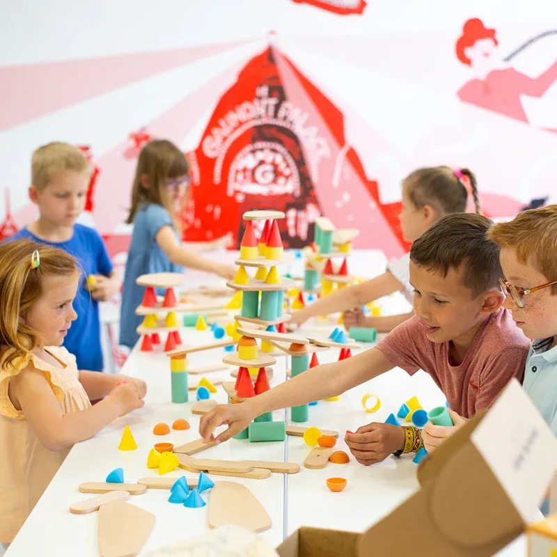 השילוב בין קונוסים מסיליקון, מחברי סטיקס ולוחות עץ יוצר אינסוף אפשרויות לבנייה יציבה, גבוהה, מורכבת – או פרועה ודמיונית.