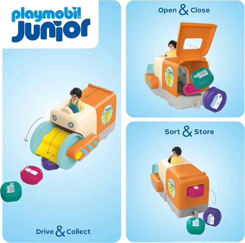 פליימוביל ג'וניור רכב איסוף אשפה מאפשר לילדים לשחק, לאסוף, למיין ולהתחיל להבין בדרך טבעית ופשוטה מה זה סדר, ניקיון ומיחזור – דרך חוויה מהנה בידיים קטנות.