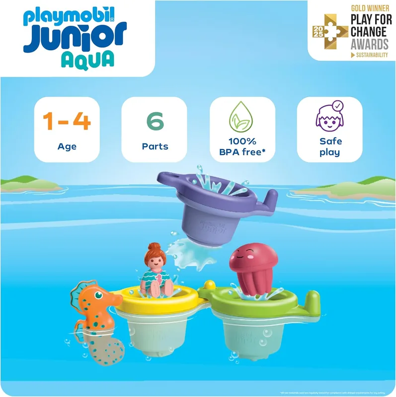 סט פליימוביל ג'וניור כוסות צפות עם כיף מים מזמין פעוטות לגלות איך מים זזים, נשפכים ומתחברים – דרך משחק בטוח, חכם ומותאם לידיים קטנות.