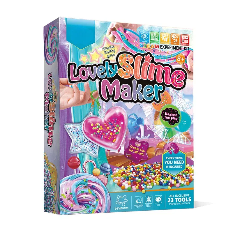 ערכת יצירה מקיפה להכנת מעל 10 סוגי סליים שונים, מוכנים מראש בצבעי הקשת.