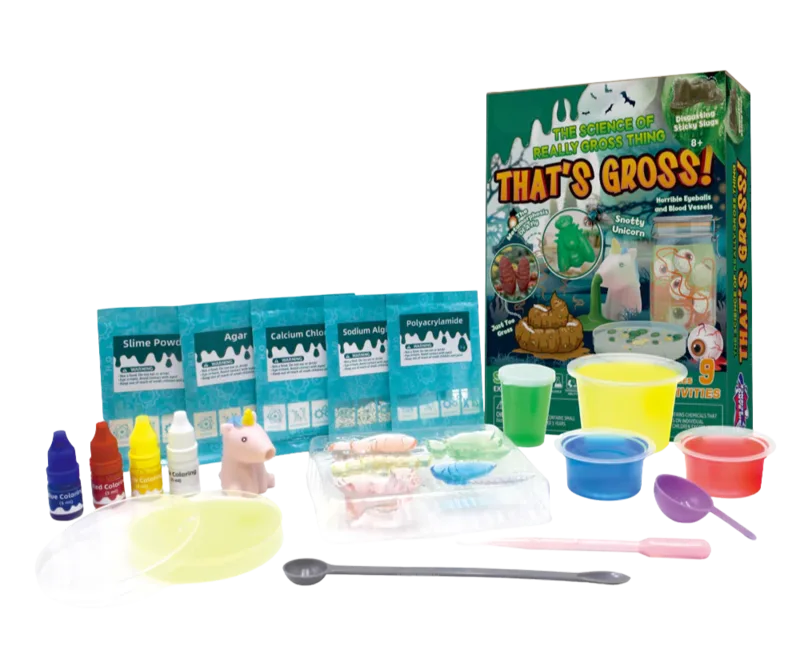 ערכת ניסויים ויצירה שמאפשרת להכין ג’לים, סליימים וחומרים “מגעילים” במראה – אבל מרתקים בתהליך.