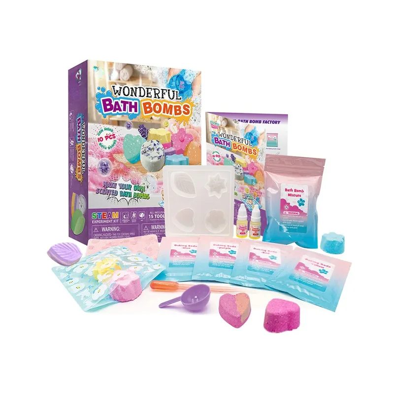 ערכת יצירה חווייתית להכנת 10 פצצות אמבטיה בעיצוב אישי.