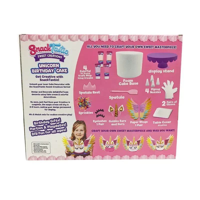 ערכת עוגת חד־הקרן של Snack Tastic מאפשרת לילדים ליצור עוגה צבעונית ומרהיבה בסגנון פנטזיה – עם קרמים צבעוניים, קישוטים נוצצים ופרטי חד־קרן מיוחדים.
