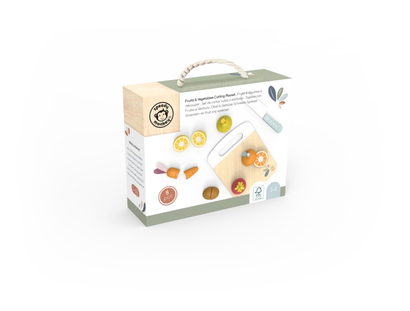 סט הפירות והירקות המעוצב של Speedy Monkey מזמין את הילדים לעולם של משחק דמיון צבעוני, ריחות מטבח ויצירה קולינרית חינוכית.