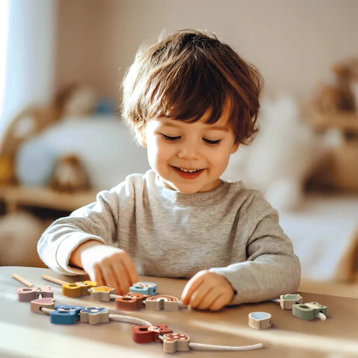 השחילו את החרוזים לפי דמיון חופשי או לפי דפוסי צבע וצורה – אין דרך אחת נכונה לשחק!