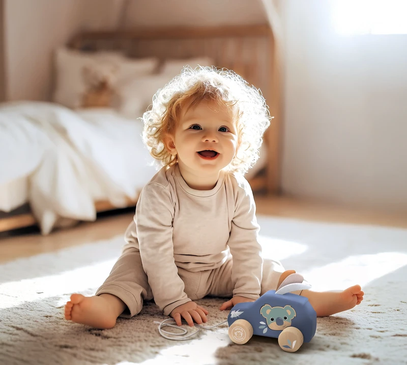 המכונית הנגררת של Speedy Monkey הופכת כל צעד להרפתקה קטנה – צעצוע עץ קלאסי שמעודד תנועה, יציבות ודמיון אצל הקטנטנים, תוך כדי משחק חמים ומלא שמחה.