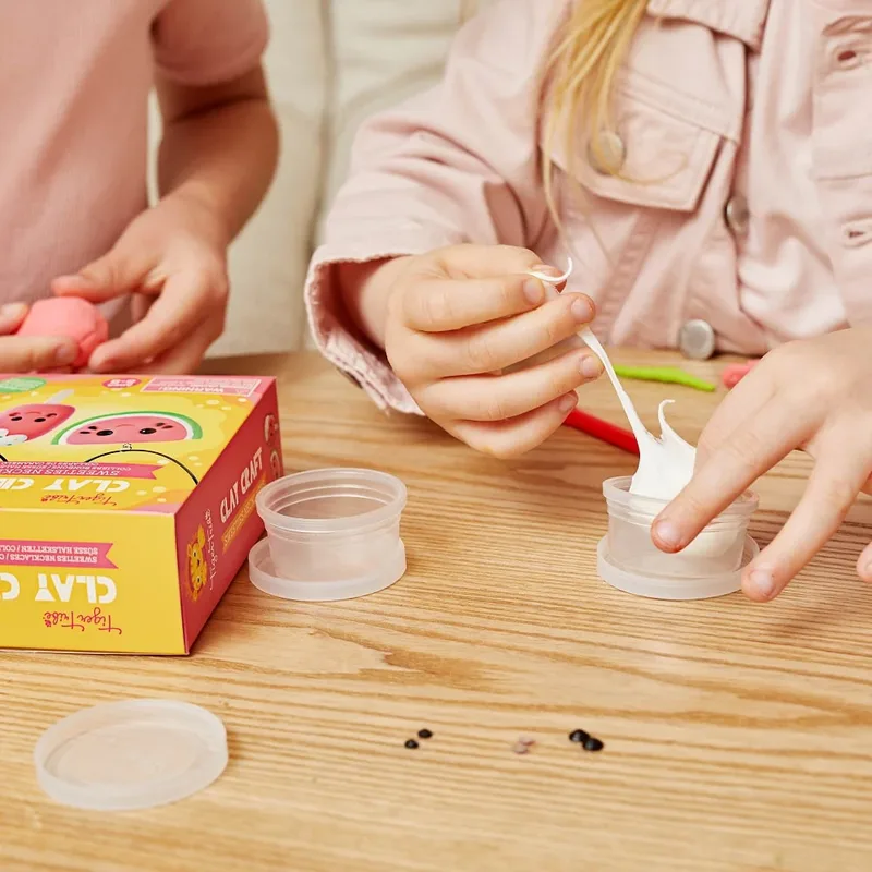 ערכת מיני הקליי של Tiger Tribe מזמינה ילדים ליצור שרשראות קוואי מתוקות – אבטיח וארטיק – מחומר רך, נעים ומלא דמיון.
